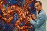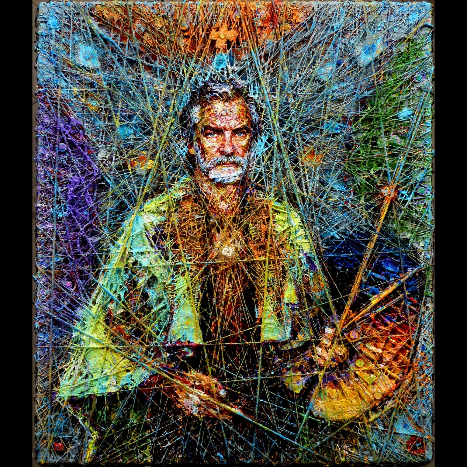foto11: Človek s paletou – XIII (z cyklu Dvanásť úprimností). 2017, plátno, kombinovaná technika, 115 x 95 cm.
