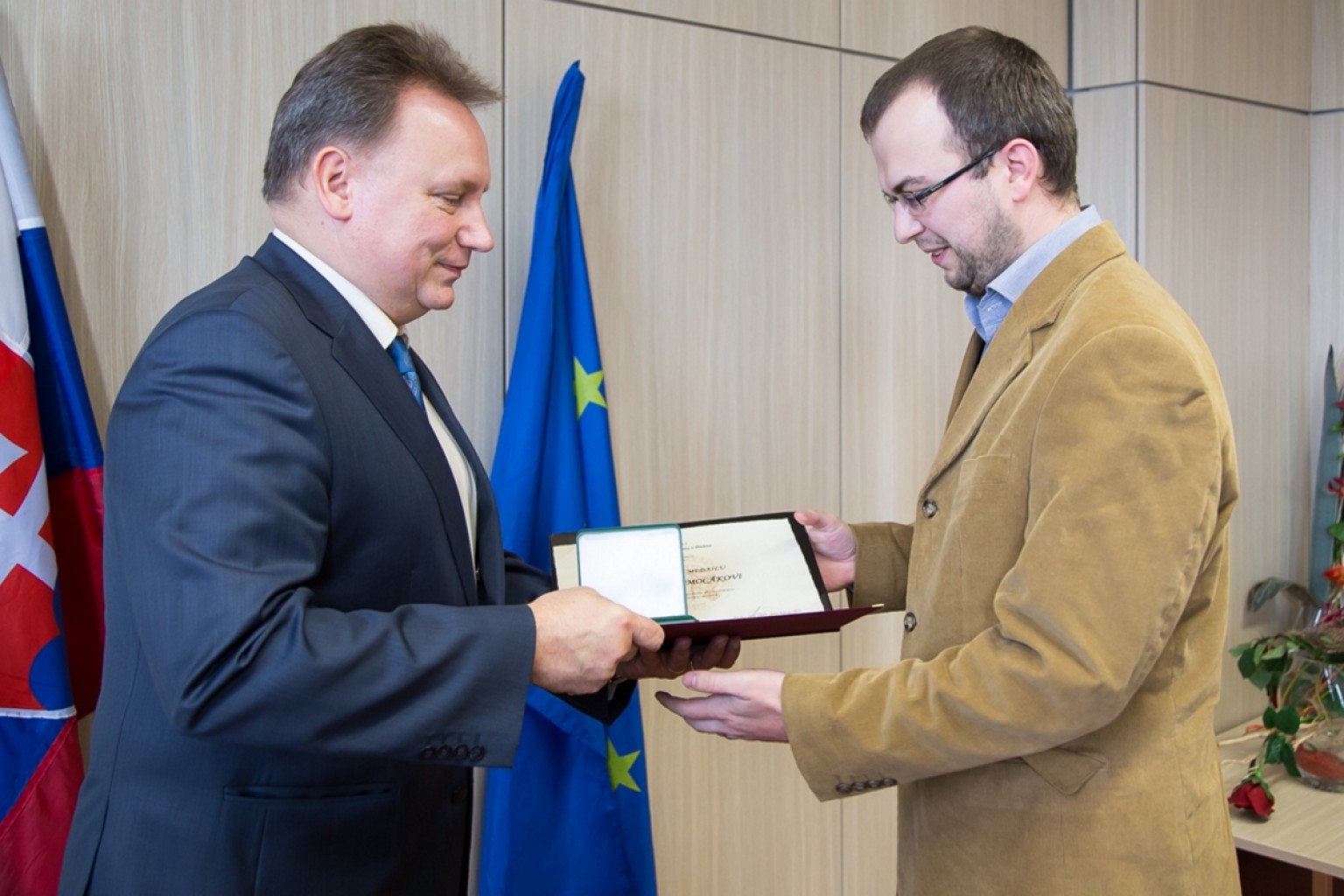 „Toto vyznamenanie berte ako ocenenie jednak vašej práce v akademických senátoch za to, že hájite záujmy študentov, ich požiadavky i nálady, ako aj ocenenie a vzdanie úcty všetkým študentom od roku 1989 na našej univerzite, ktorí sa významný spôsobom podieľali na novembrových udalostiach prinášajúcich zmenu v našej spoločnosti,“ pokračoval rektor.